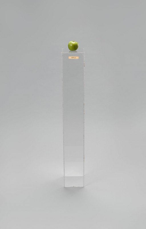 Yoko Ono (Japanese, born 1933). "Apple," 1966. Plexiglas pedestal, brass plaque, apple, 45 × 6 11/16 × 6 15/16″ (114.3 × 17 × 17.6 cm). Private collection. © Yoko Ono 2014